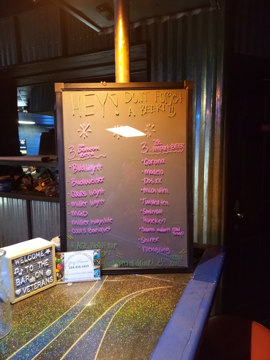 Welcome to The Bar on Veterans, a delightful gem located at 524 E Veterans Memorial Blvd in Harker Heights, TX. While they don't offer food, the menu of expertly crafted drinks and a vibrant atmosphere make it a must-visit spot. Customers rave about their signature fruity cocktails, which have left lasting impressions, turning casual patrons into loyal regulars. The friendly bartenders are known for their personalized service, often whipping up drinks that suit your taste.